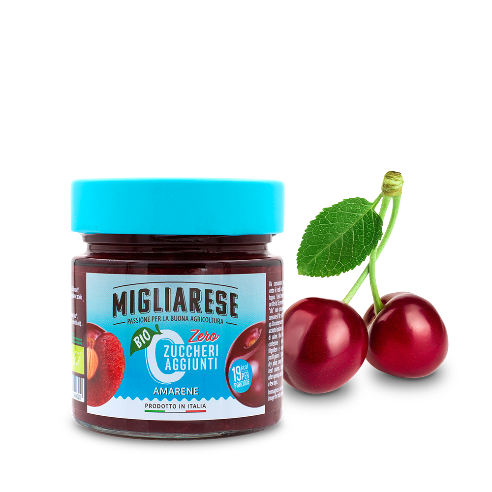 Preparazione biologica di amarene con edulcorante